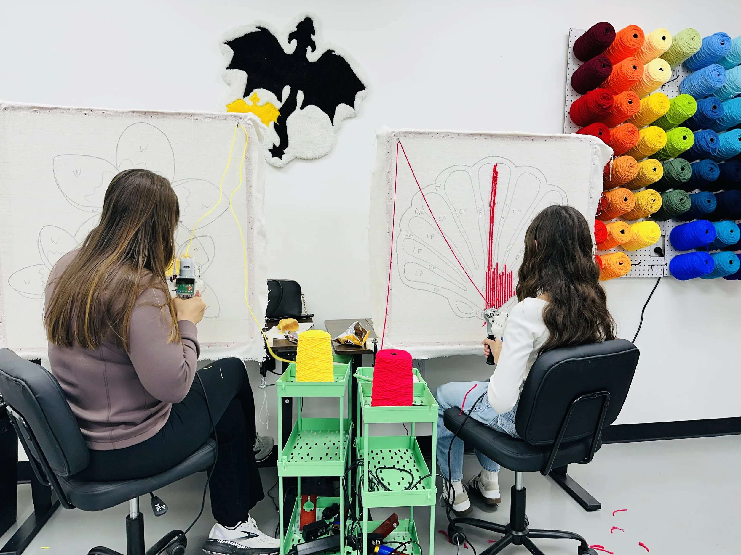 Feel free to bring snacks, drinks, or headphones. If you have long hair, we recommend bringing a hair tie — we’ll be using tufting guns, trimmers, and hot glue guns.